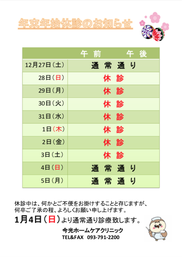 年末年始休診のお知らせ
